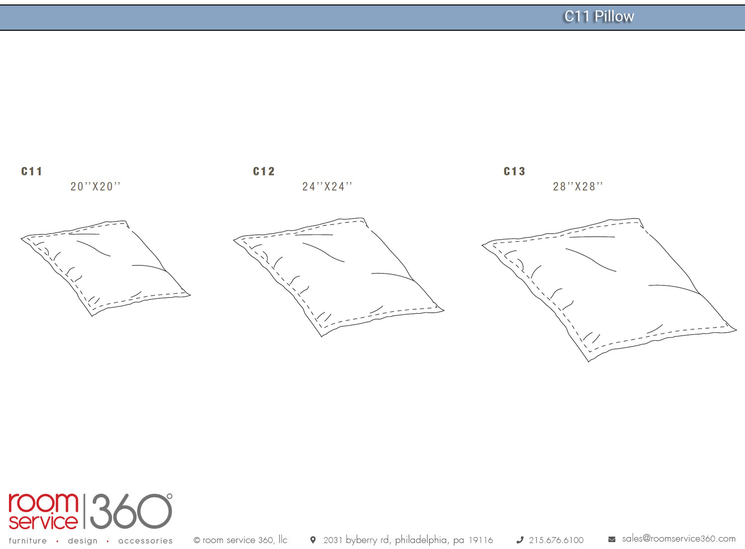 - C11 pillow: 20"W × 20"H