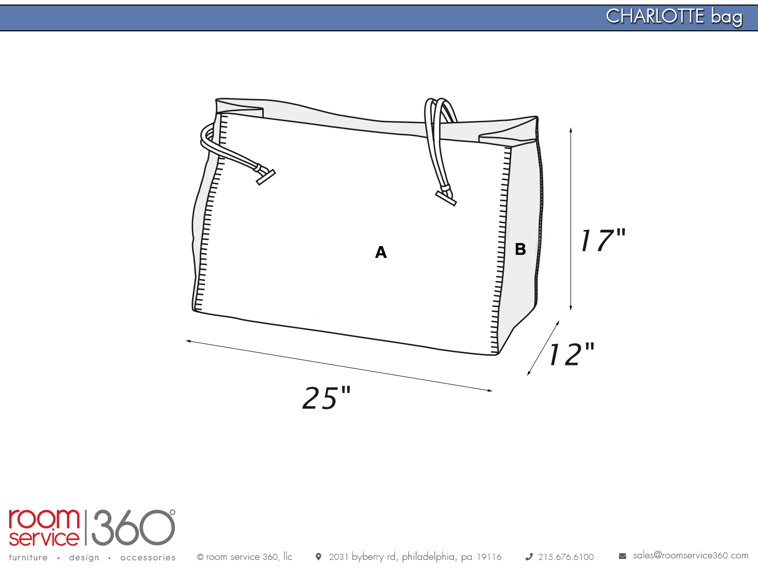 - Charlotte bag: 25"W x 12"D x 17"H
