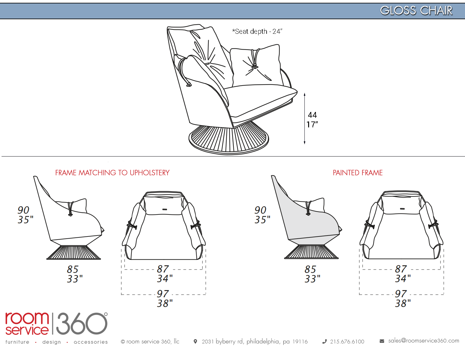The Gloss swivel armchair features a hardwood frame upholstered in matching leather, unique stitching details and painted metal round swivel base. The unique profile features unparalleled style and makes a lovely centerpiece in a modern living room, and the swivel feature adds a convenient element. With an elegant sculptural base that is lightweight yet sturdy, this chair is both beautiful and practical.