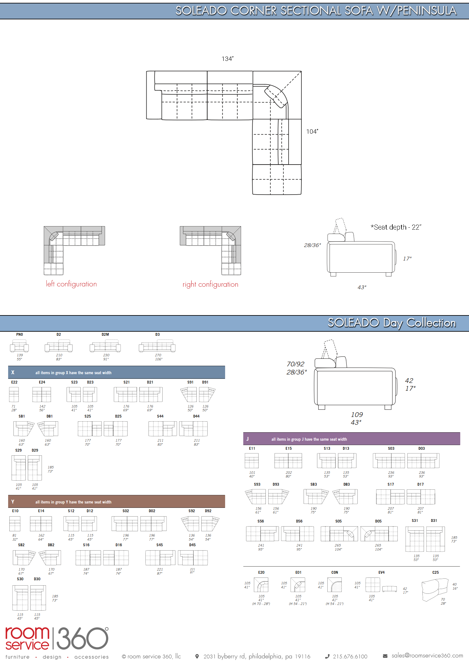 - Seat depth: 22"