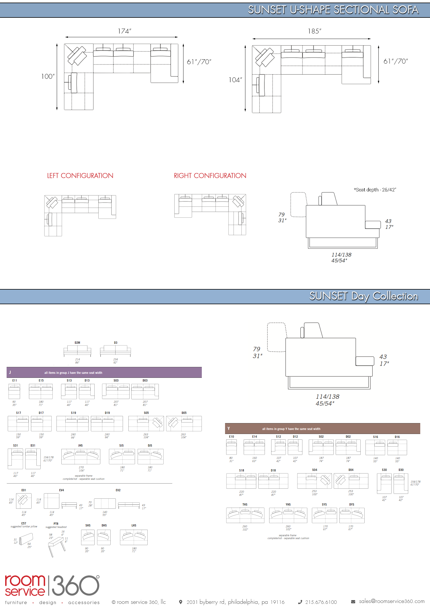 Sunset J-shape sectional sofa comes in two sizes to accommodate individual needs. It features a hardwood frame, feather filled seats and backs, and metal legs. A wide selection of genuine Italian leather and fabric upholstery options are available.