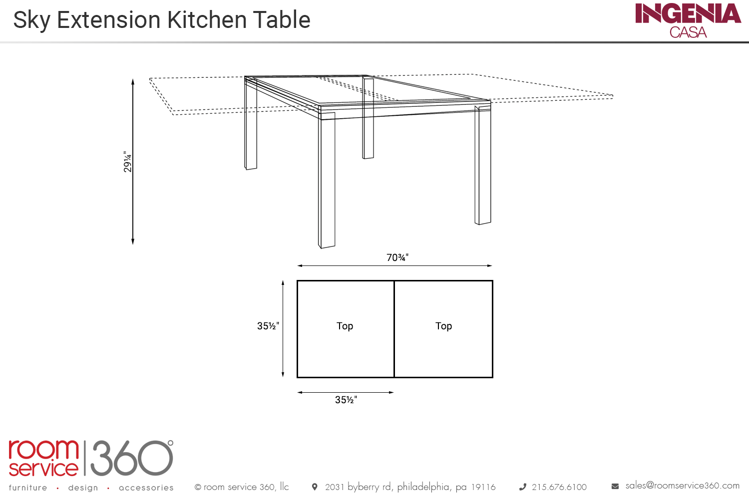 - 35½" - 70¾"W × 35½"D × 29¼"H