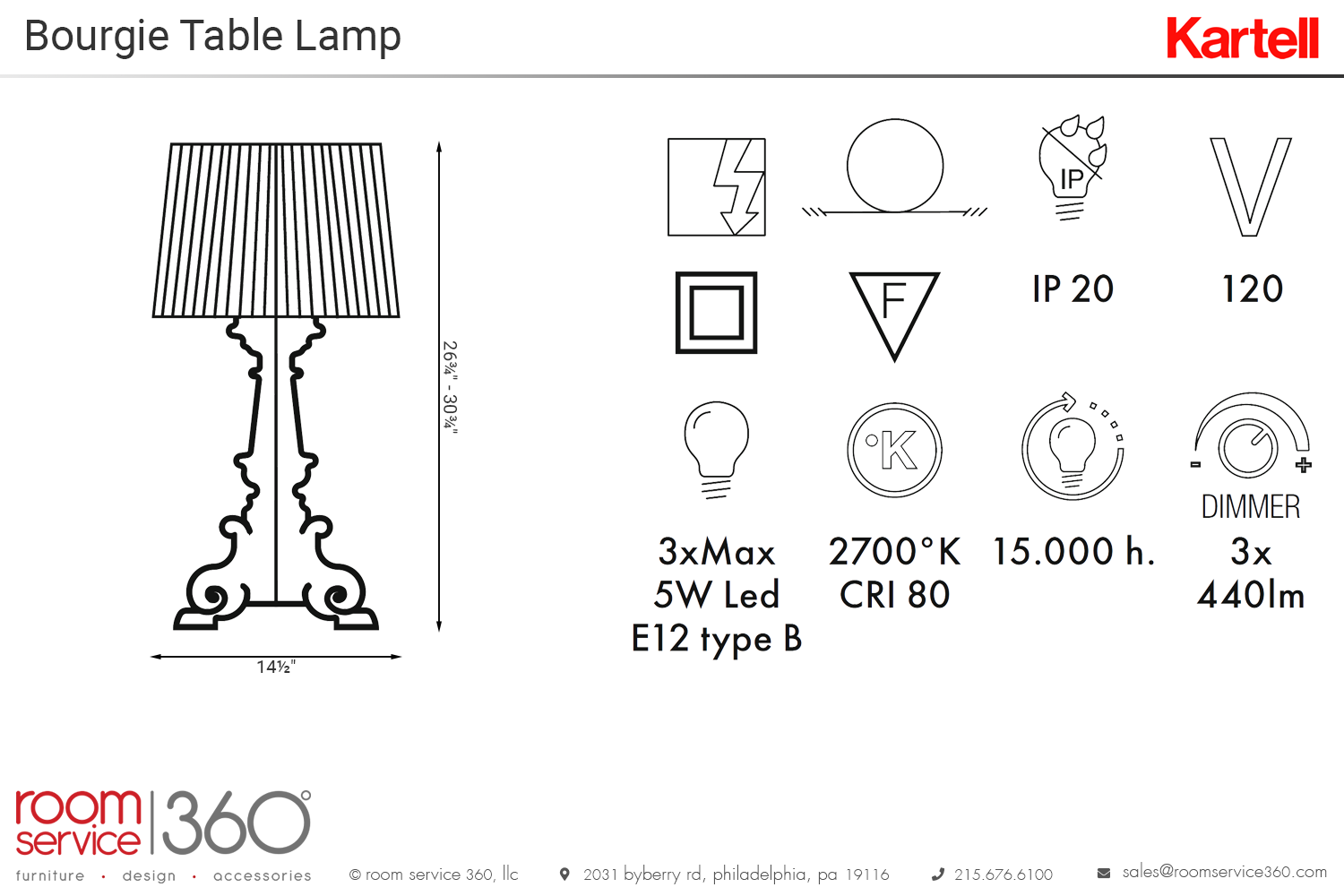 - Ø14½" × 26¾"-30¾"H
