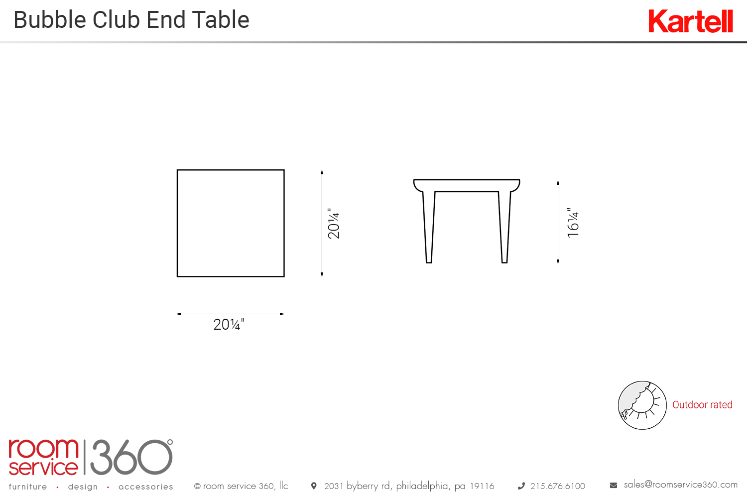 - 20¼"W × 20¼"D × 16¼"H