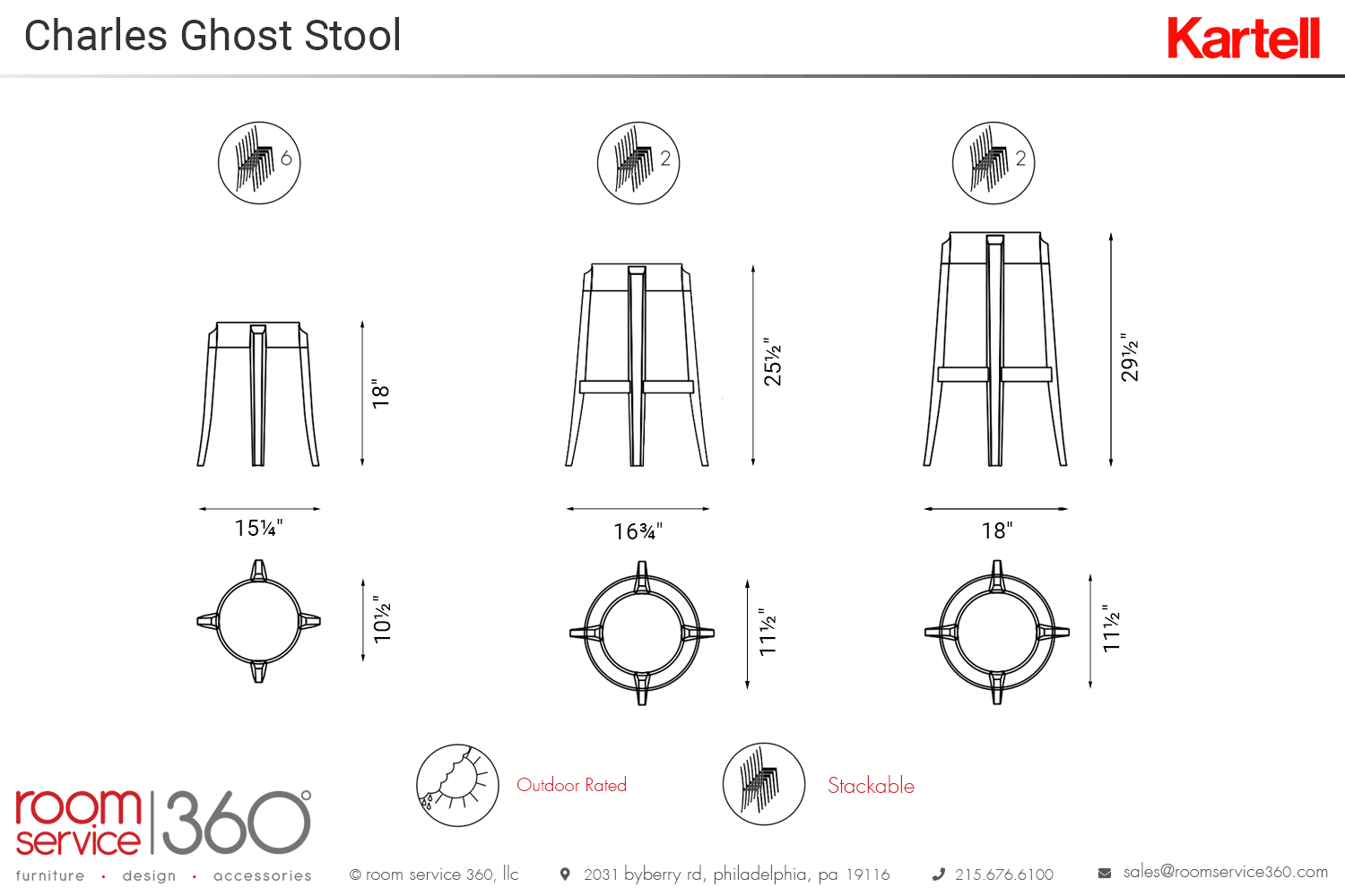 - Stackable stools (small up to six; other sizes up to two)