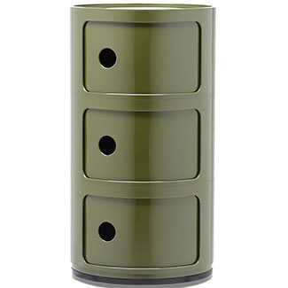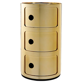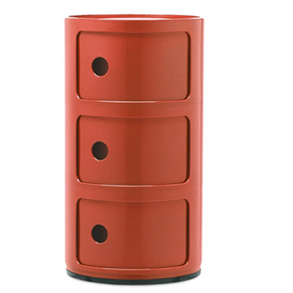 Look no further for an ideal storage and display solution with the sleek Componibli end table by Kartell. Geometrically inspired and eye-catching, the cylinder-shaped silhouette has a small footprint that makes it fit in well in all sized spaces. The structure features multiple compartments with sliding doors that open from the round cutouts. Thanks to the use of the best quality materials, it is sustainable for the long haul.