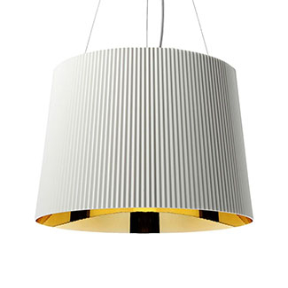 Illuminate your home in style with the help of the aesthetically pleasing GÈ suspension light by Kartell. The open cylinder-shaped diffuser features a textured striped pattern for a playful use of geometry. Perfect over a dining table or counter, it casts ambient illumination and encases the room in a soft glow. With a strong and sturdy wire, the light hangs from the ceiling supportively and will be a fixture for the long haul.
