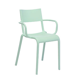 Minimalistic and durable, the Generic A dining chair by Kartell is a practical and stylish seating solution for a modern dining room or kitchen. The slightly curved back provides comfort and ergonomic support and features an opening between the seat and back. Thanks to the use of durable plastic material, the chair is sustainable for the long haul both indoors and outdoors. The simple design complements an array of grand dining tables to form a cohesive look.