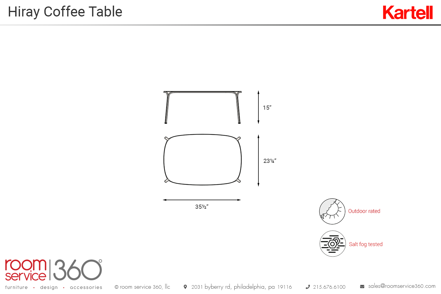 - 35½"W × 23¼"D × 15"H