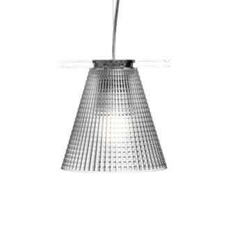 Brighten your modern home with the Light-Air pendant light by Kartell. The structure features a funnel-shaped lampshade with a studded texture on the outside for a dimensional touch. Also, it features an adjustable wire that is ceiling hung. By providing ambient illumination, this product is perfect over a kitchen table or counter, encasing the area in a warm glow. You can place this pendant by itself or in eye-catching groups for versatile visual effects.