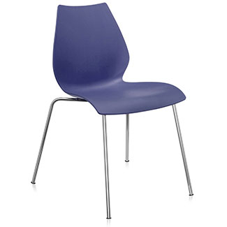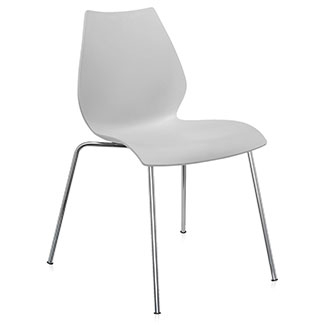 Look no further for a stylish yet practical seating solution for a modern dining area than the bold Maui dining chair by Kartell. With a geometrically inspired silhouette, it features a combination of rounded accents and sharp angles for an eye-catching contrast. The curved seat molds to your body for hours of comfort while the sturdy metal legs offer support for years to come. For added convenience, the chairs are stackable.
