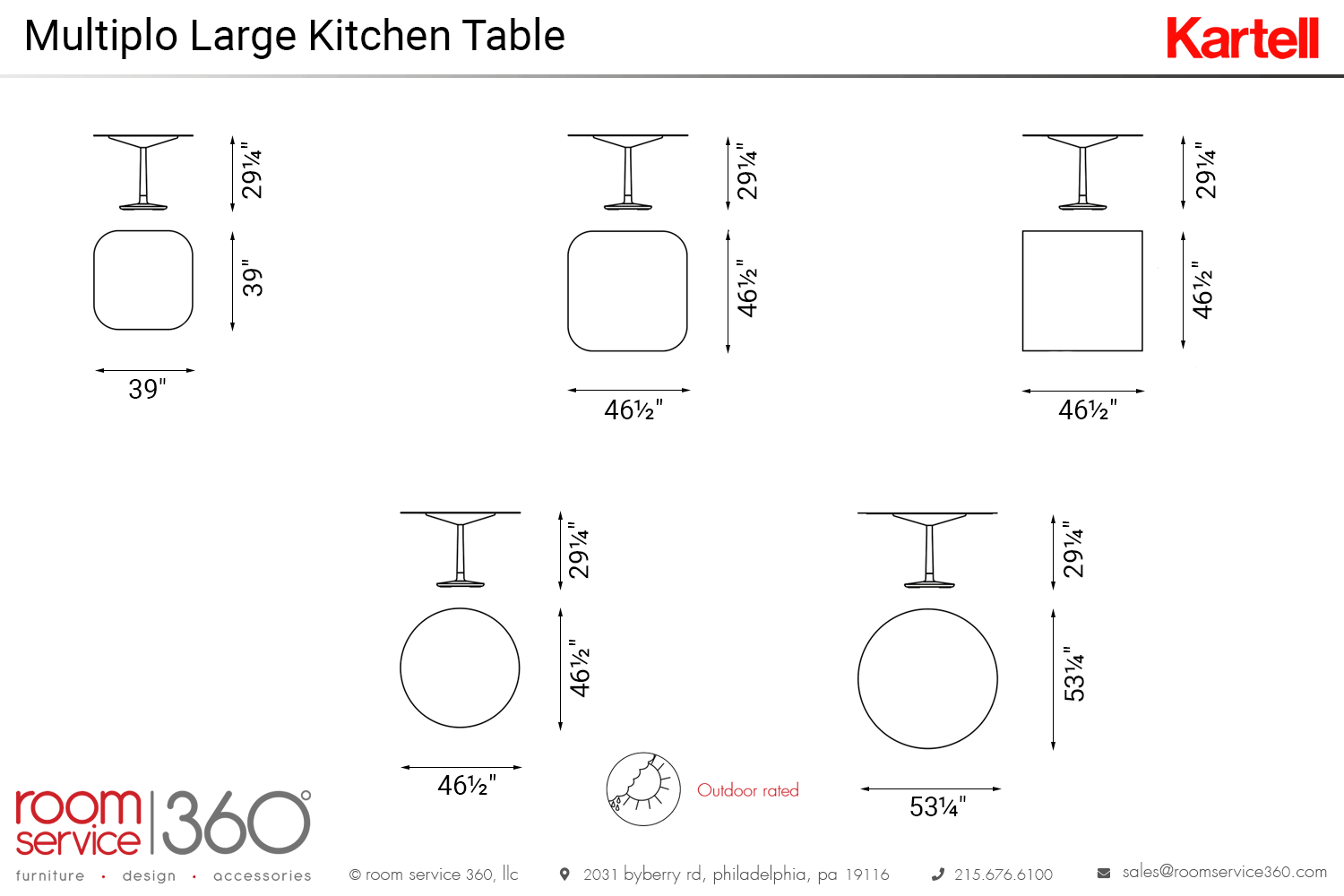 - 39"W × 39" D × 29¼"H