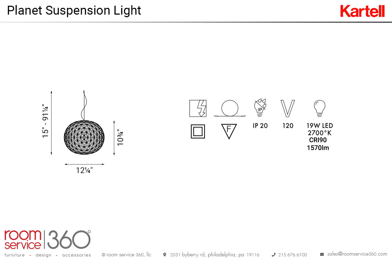 As the name suggests, Planet suspension light adds an otherworldly style to a contemporary setting. The round pendant features a textured geometric design for an eye-catching touch. With a strong, sturdy wire, the light suspends securely from the ceiling and provides ambient lighting to the room. Whether hung along or in stunning groupings, the light makes a grand impression.