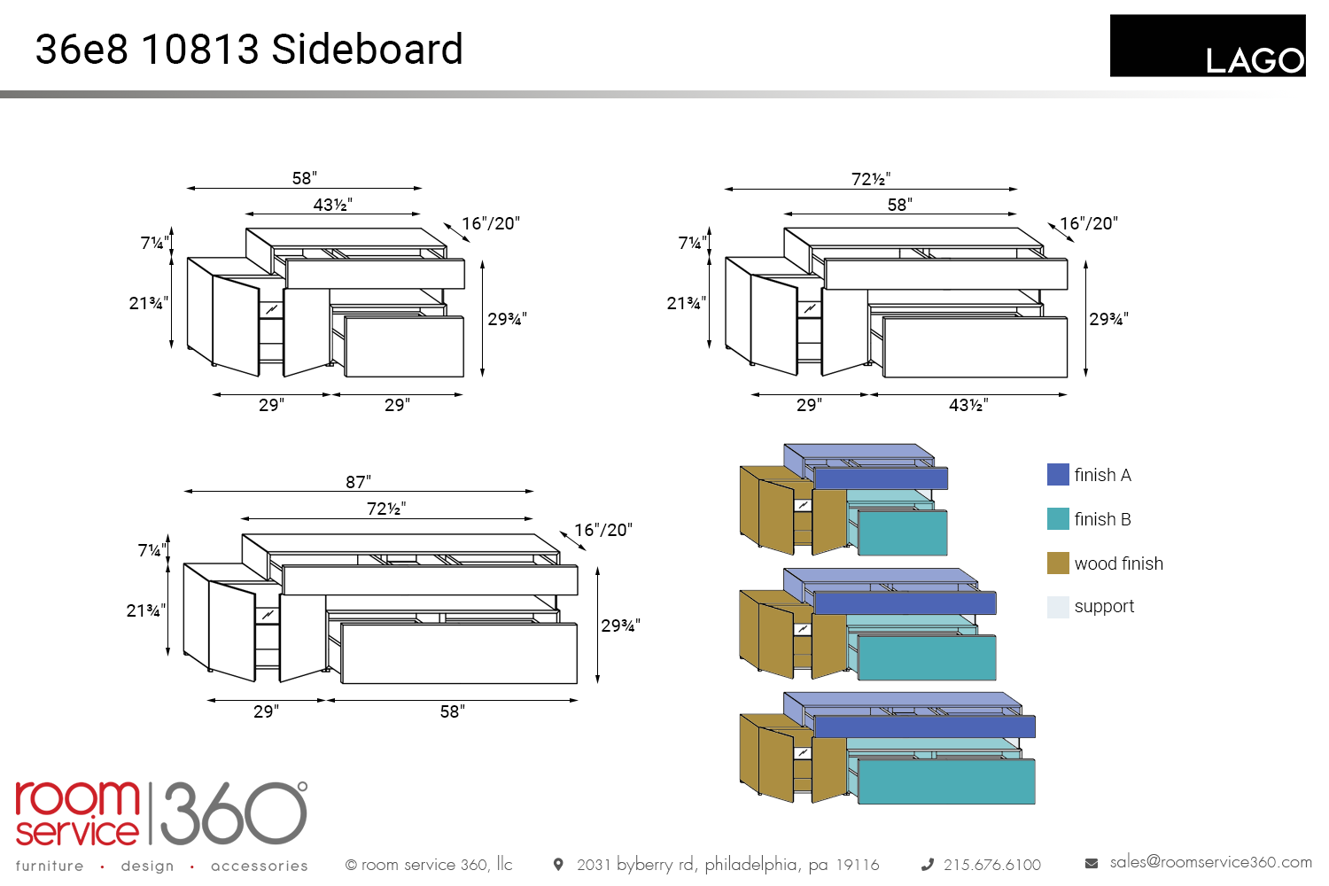 - The fronts, finish A and B, are offered in various matte lacquer, polished glass, or matte glass finishes