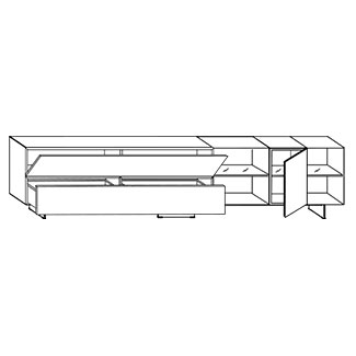 An exciting element of the 36e8 collection, the 36e8 2661 TV stand is a living room furnishing destined to be the focal point. A generous silhouette spans hefty distances, its linear, geometric sensibilities perfect for the modern home. Standing on bladed supports available in a glass finish, the structure looks as if it's suspended enchantingly. Featured in this TV stand are several modes of storage and display, with flap door and swing door cabinets, a drawer, and up to two glass display cabinets, depending on which of the three versions you choose. Place your television on top for a cohesively sleek scene.