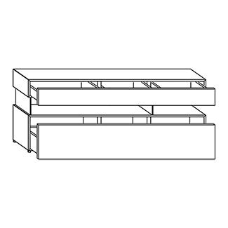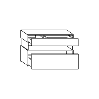 - The front of the drawers come in matte lacquer, glass, and wood finishes