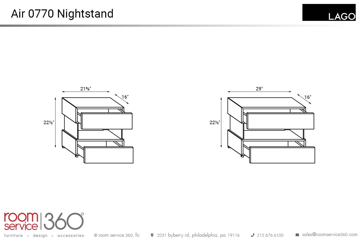 Look no further for practical, stylish bedroom accent pieces than the Air 0770 nightstands by Lago. Available in two versions, these products provide ample storage and display solutions with two drawers, a spacious middle shelf, and a large top. Whether you want to show off items or have them neatly organized and out of sight, you have the options to do both. Contrasting finishes stand out against one another for a stylish finishing touch. Pair with an array of Lago beds to form a cohesive design concept.