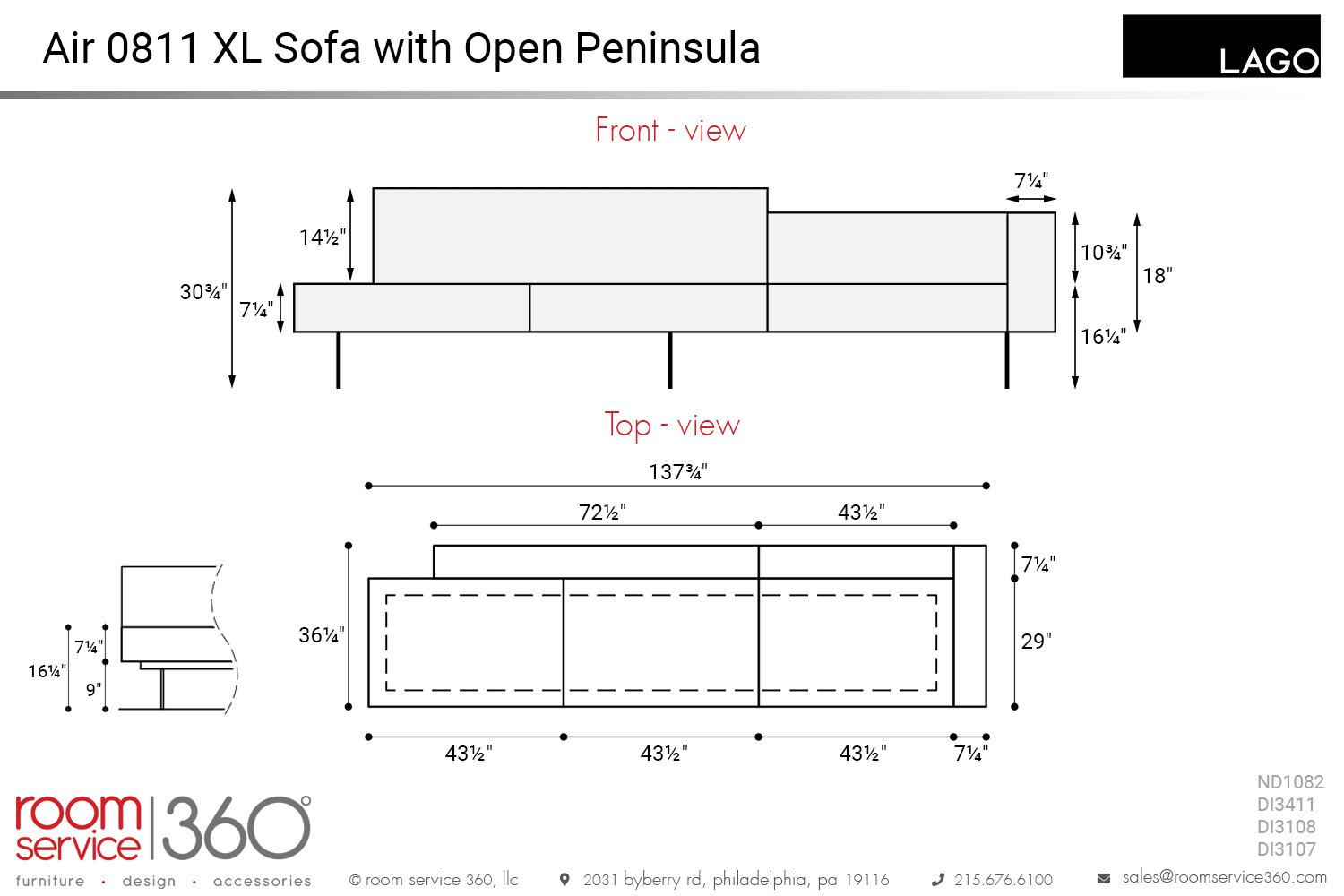 Air 0811 XL Sofa with Open Peninsula #15383