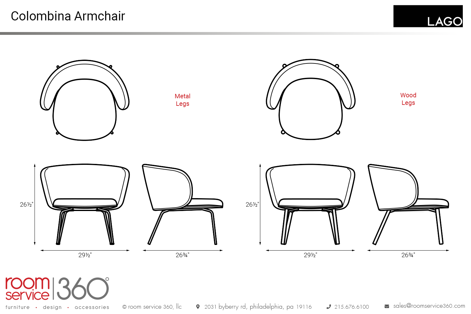 - 29½"W × 26¾"D × 26½"H