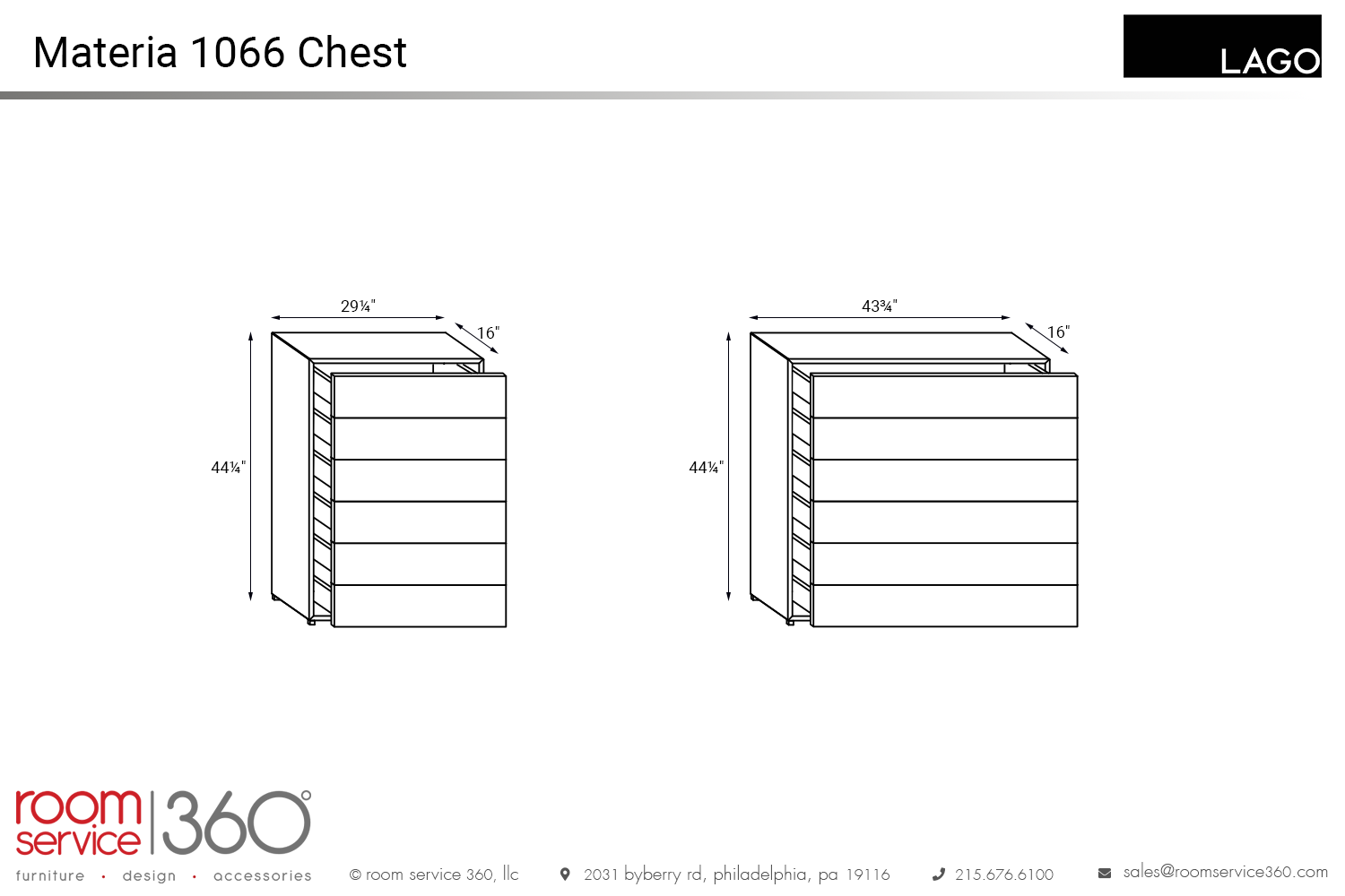 - 43¾"W × 16" D × 44¼"H