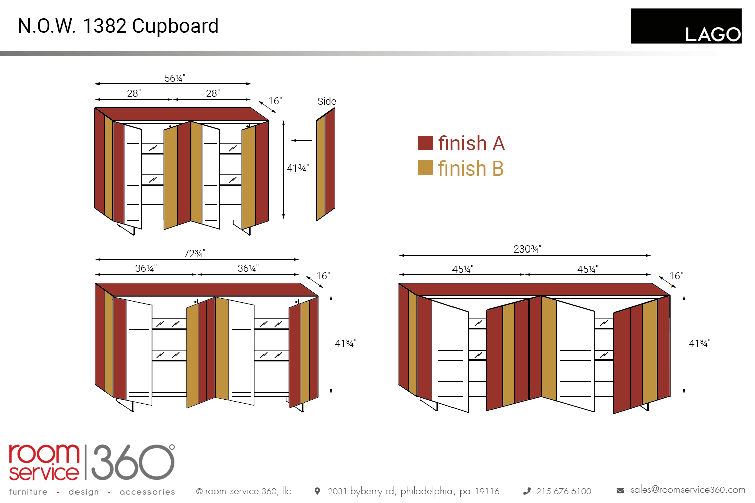- 56¼"W × 16" D × 41¾"H