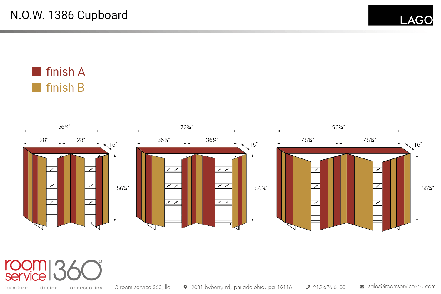 - 56¼"W × 16" D × 56¼"H