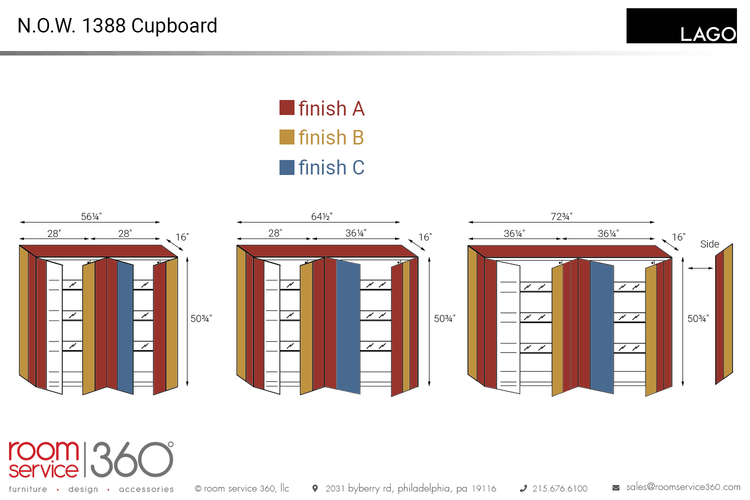 - 56¼"W × 16" D × 50¾"H