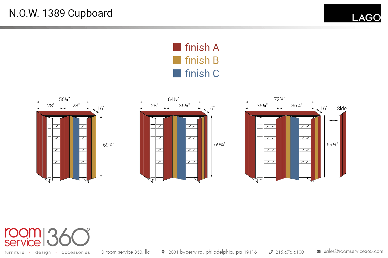 - 56¼"W × 16"D × 70¾"H