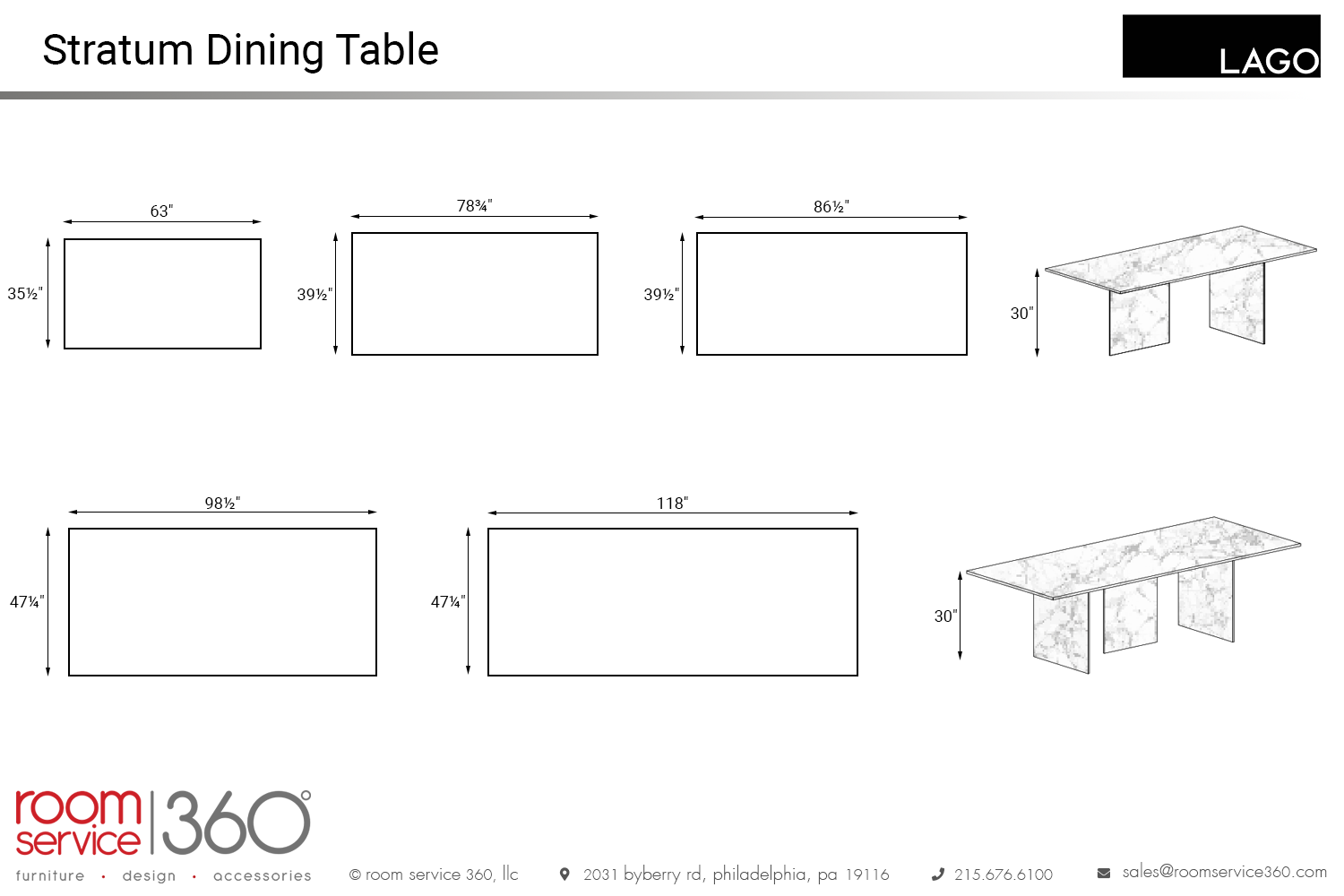 - 63"W × 35½"D × 30"H