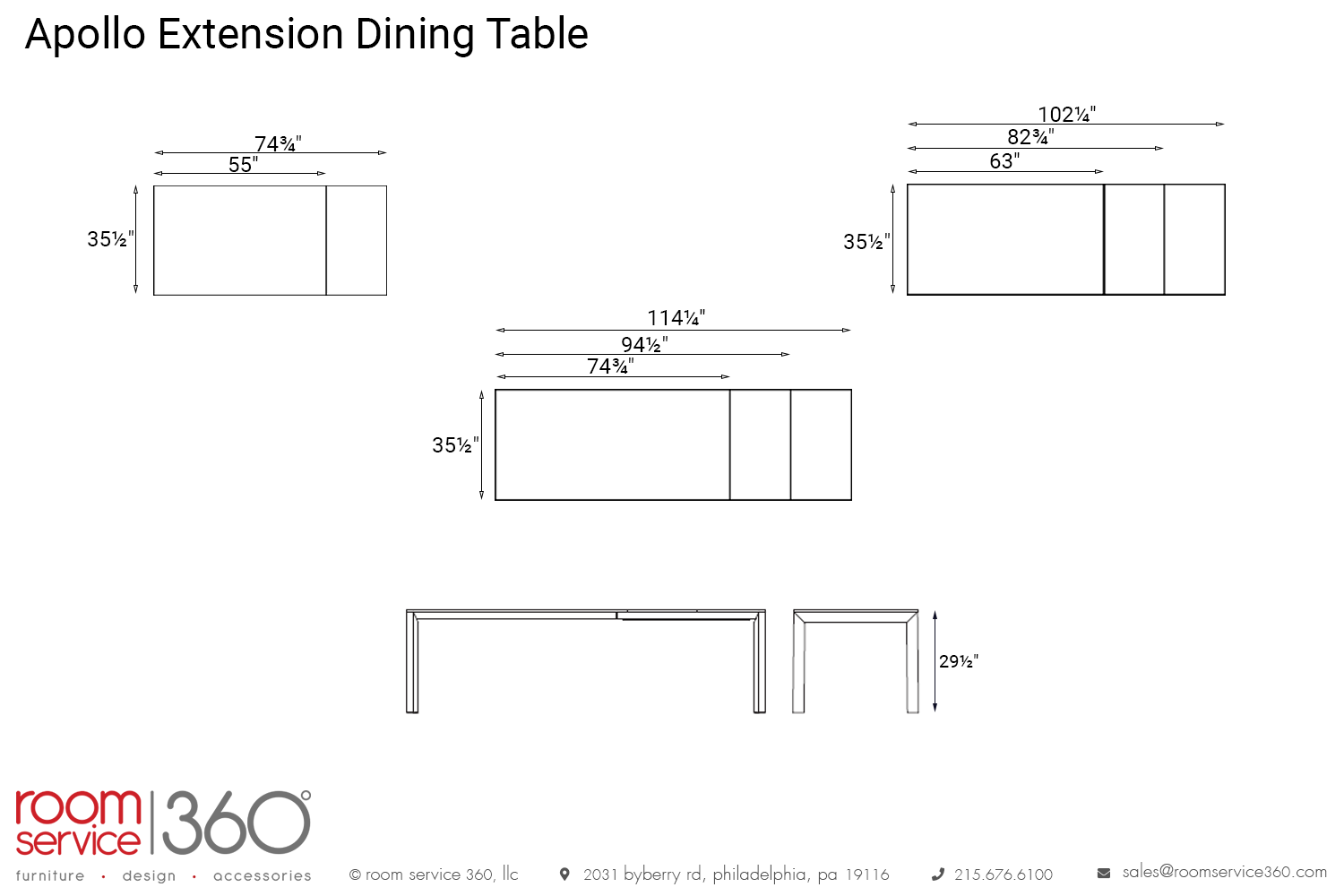 - 74¾" - 94½" - 114¼"W × 35½"D × 29½"H