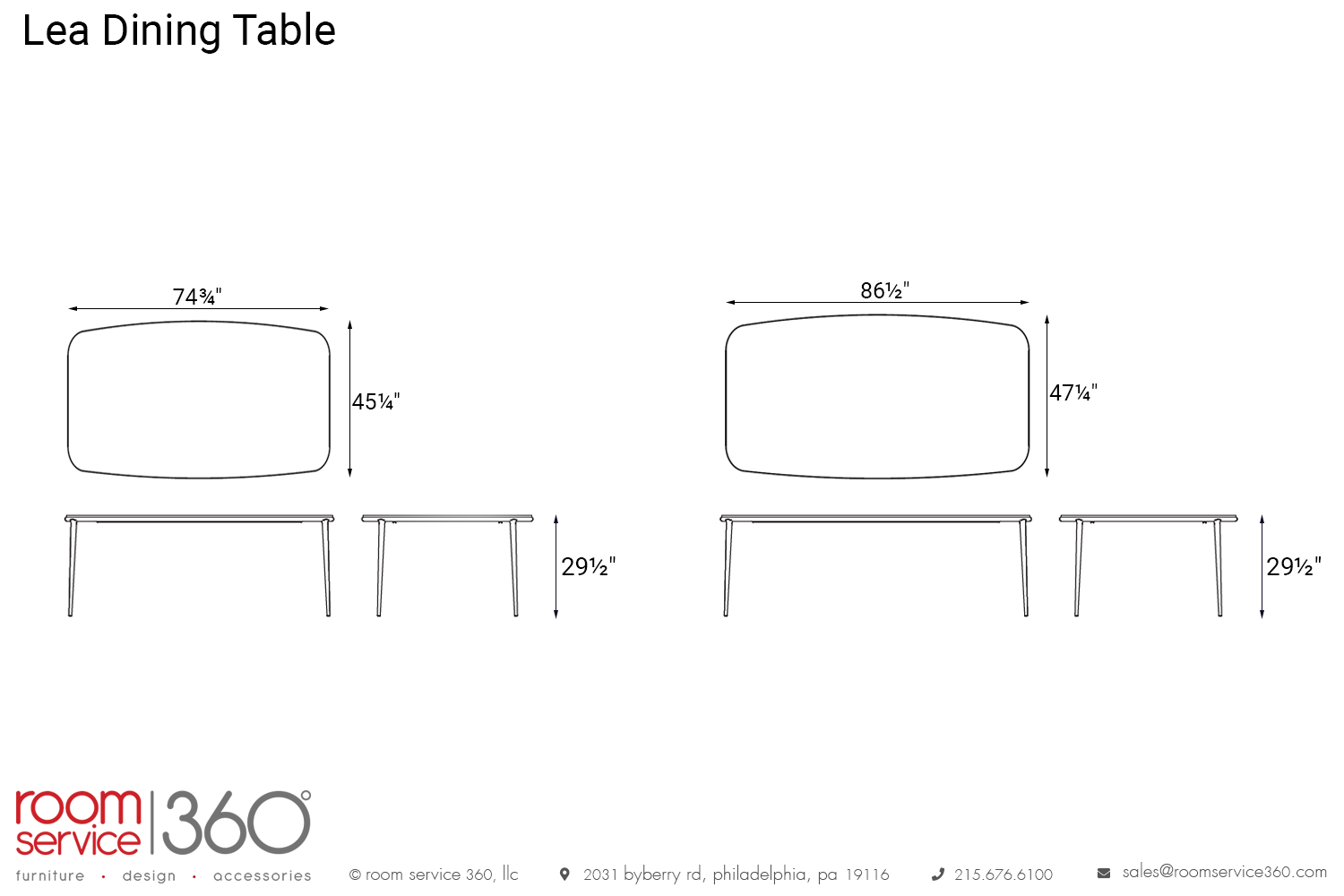 - 74¾"W × 45¼"D × 29½"H