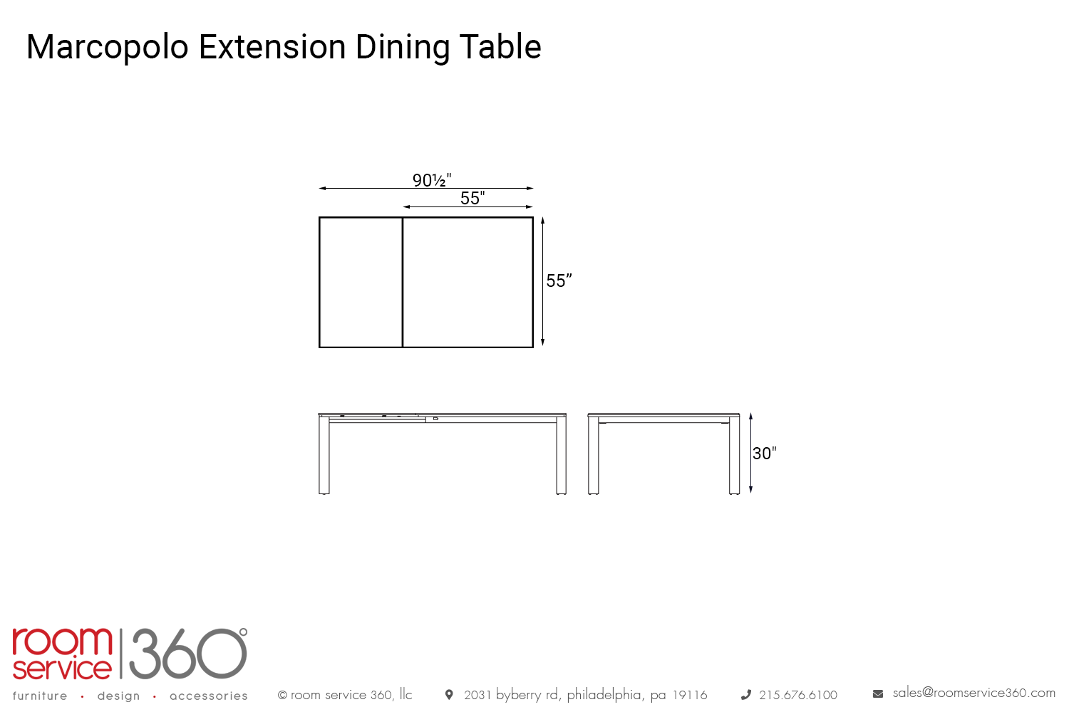 - 55" - 90½"W × 55"D × 30"H