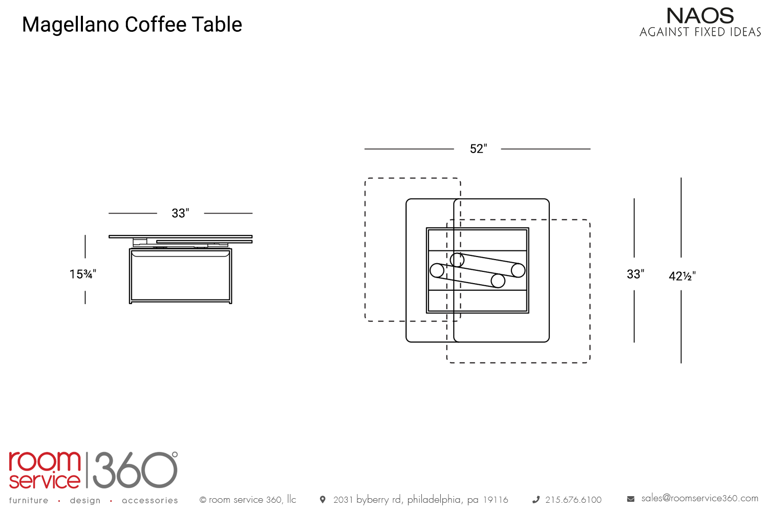 - 33" - 52"W × 33"D × 15¾"H
