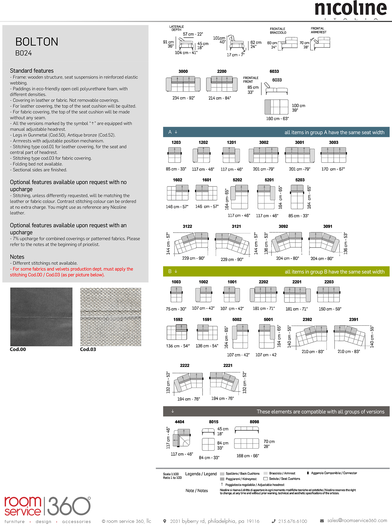 This sofa is highly customizable. Choose from many fabric and leather upholstery options and either gunmetal or antique bronze finish for the legs. There are two sizes available for this sofa, as well as a left or right-facing configuration. The Bolton sofa with peninsula is a part of the Bolton collection from Nicoline Italia and is manufactured with incredible attention to detail in Italy.