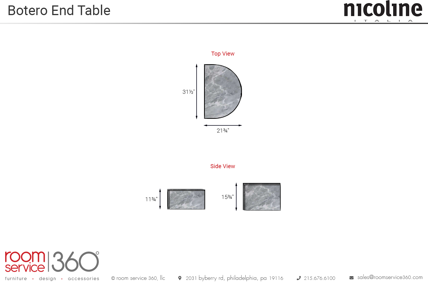 Four marble finishes are available to customize this end table, all with elegant patterns and color schemes. As mentioned previously, there are two heights available. The Botero end table is manufactured by Nicoline Italia in Italy with incredible attention to detail.