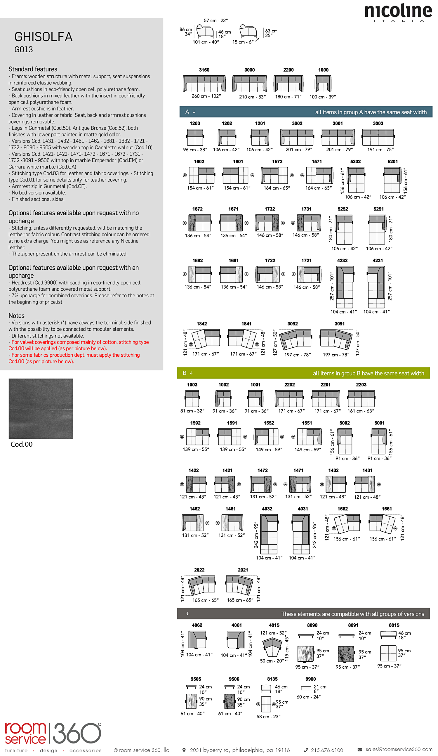 Manufactured in Italy with only the best materials, the Ghisolfa double chaise is built to last. It comes in three sizes to accommodate individual needs. Upholstery options include an array of fabrics and leathers, and the stitching comes in matching, lighter, and darker colors.