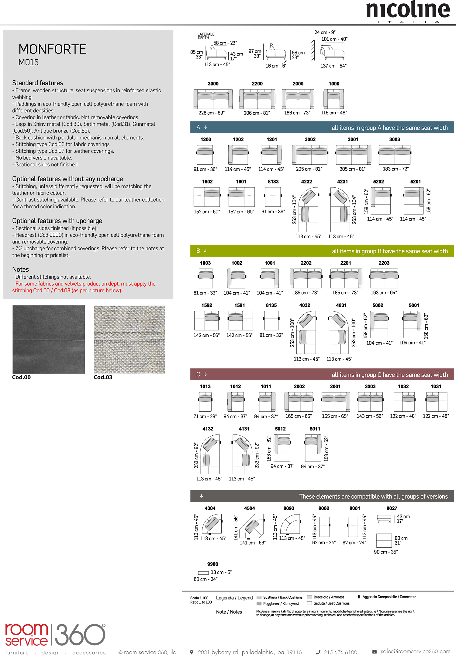 - Cod. 03 stitching is for fabric upholstery only