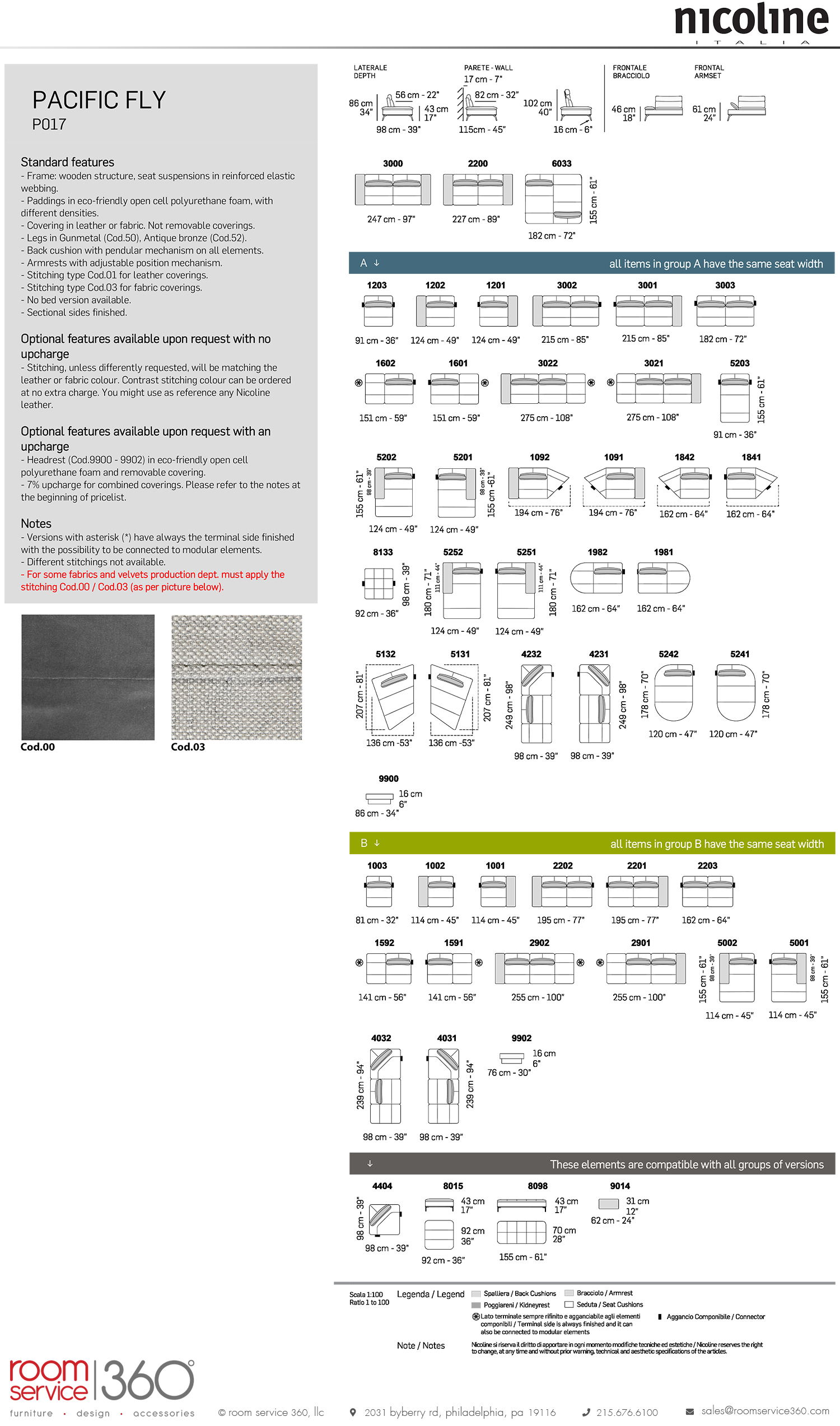 This sofa is highly customizable on account of the many fabric and leather upholstery options in various colors and textures; customize it further with a choice between sturdy gunmetal and antique bronze finishes for the legs. Choose from a left- or right-facing configuration to get the best fit for your home. The Pacific Fly sectional sofa with chaise is a part of the Pacific collection from Nicoline Italia.