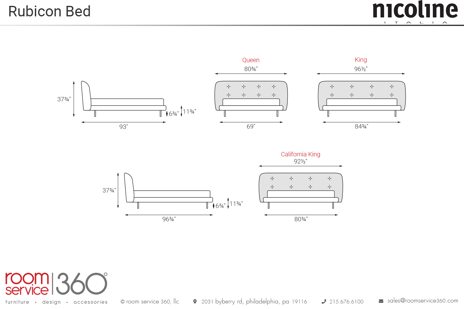 - Queen: 80¾"W × 93"D × 37¾"H (MAT. 60"×80")