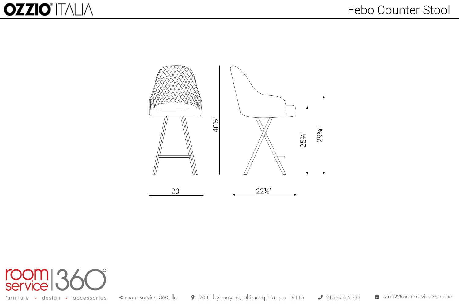 Manufactured in Italy to ensure quality and designed by Studio Ozeta, the Febo counter stool is easily customized. Upholstery options include an array of fabrics, leathers, and eco-leathers, while the frame comes in metal options.
