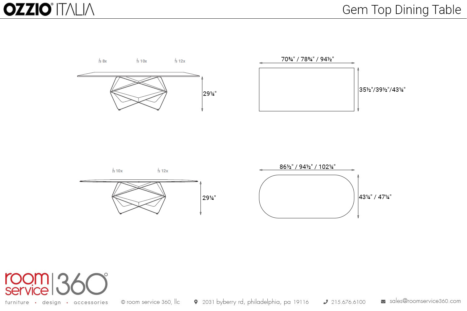 Manufactured in Italy to ensure quality, the Gem Top dining table is available in rectangular and oblong sizes. The top comes in glass options, and the base comes in metal finishes.