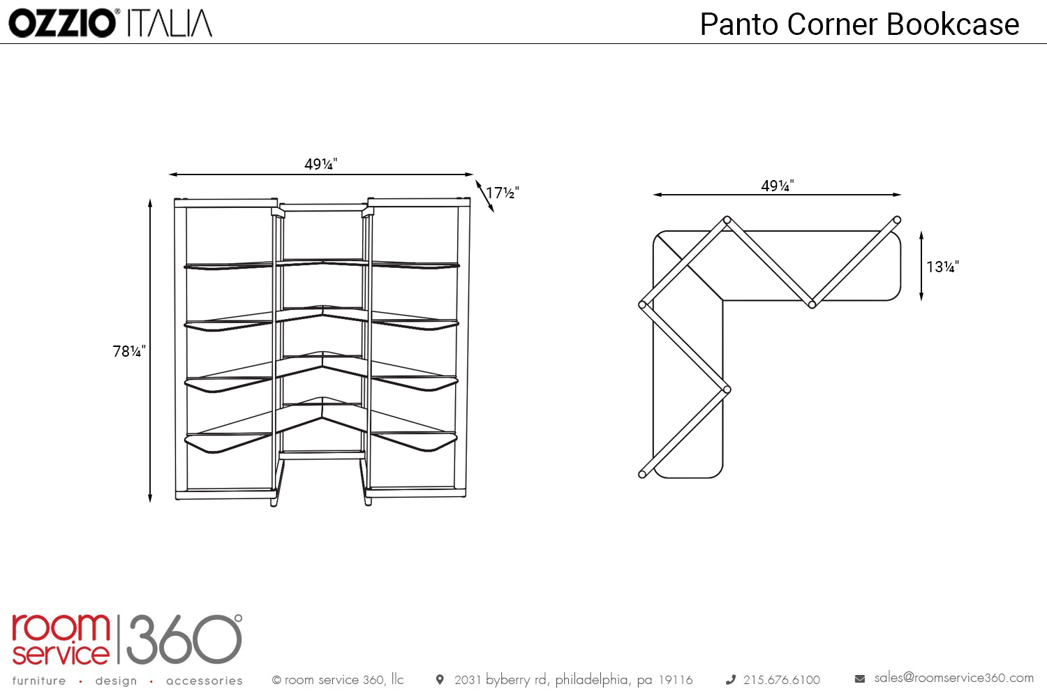 - 49¼"W × 17¼"D × 78¼"H