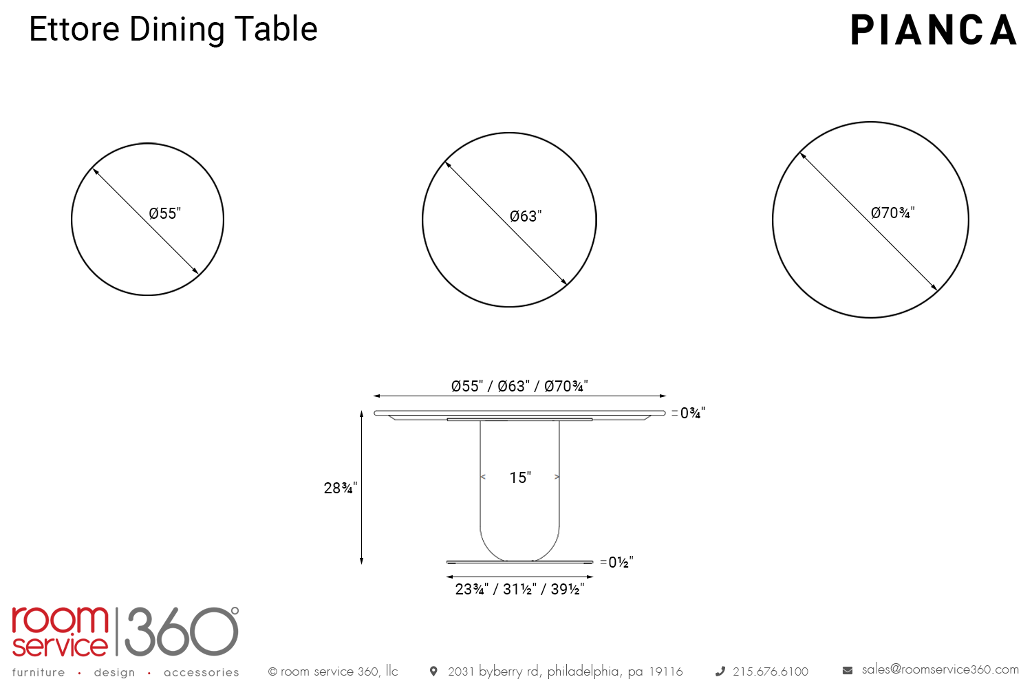 - Ø63" × 28¾" H