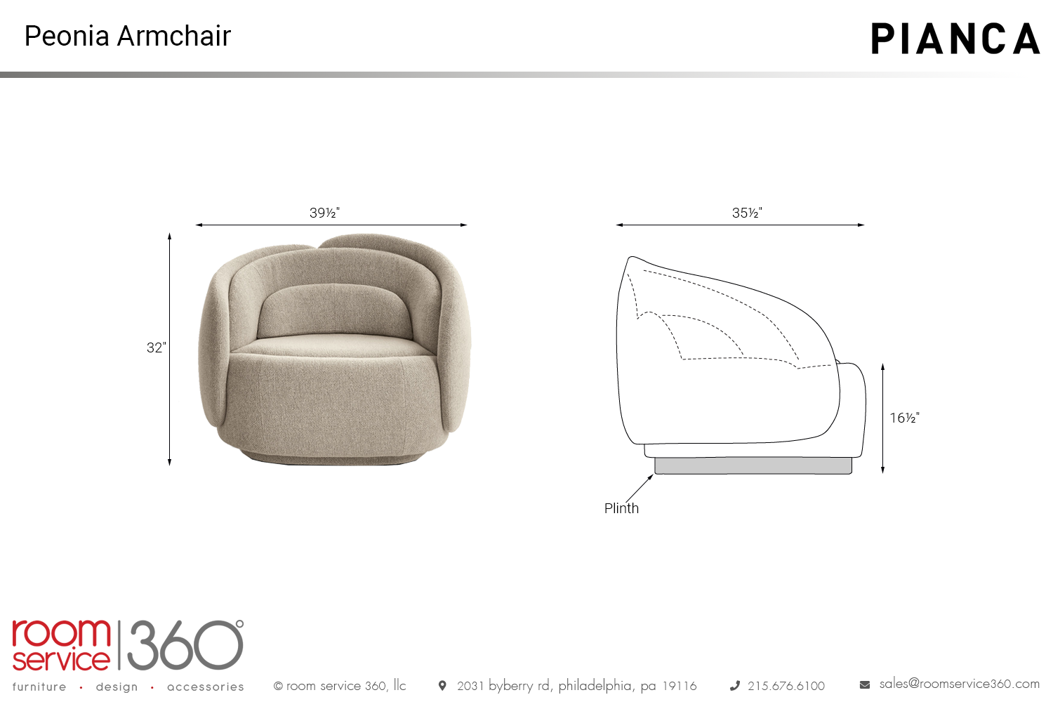 There is a fixed base version or a swivel version with a 90° return that helps you achieve the most comfortable sitting position. Various eco-leathers, leathers, and fabric upholstery options are available for the best fit texturally and by color. The plinth can be the same as the upholstery or can be finished in Nero Opaco lacquer. The Peonia armchair is a part of the Peonia collection of seating solutions from Pianca, designed by Cristina Celestino and manufactured in Italy.