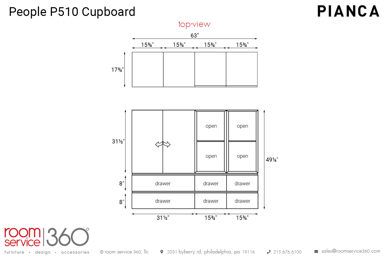 Store and display all of your belongings with the help of the chic People P510 cupboard by Pianca. The eye-catching silhouette features a combination of swing door compartments, open shelves, and different-sized drawers. Because of the various storage containers, keeping your dishes and glassware out-of-sight and organized has never been easier. In addition to being practical, this cupboard also offers a chic style thanks to the contrasting finishes that pop against one another. Pair with other pieces from the People collection to form a cohesive finishing look.