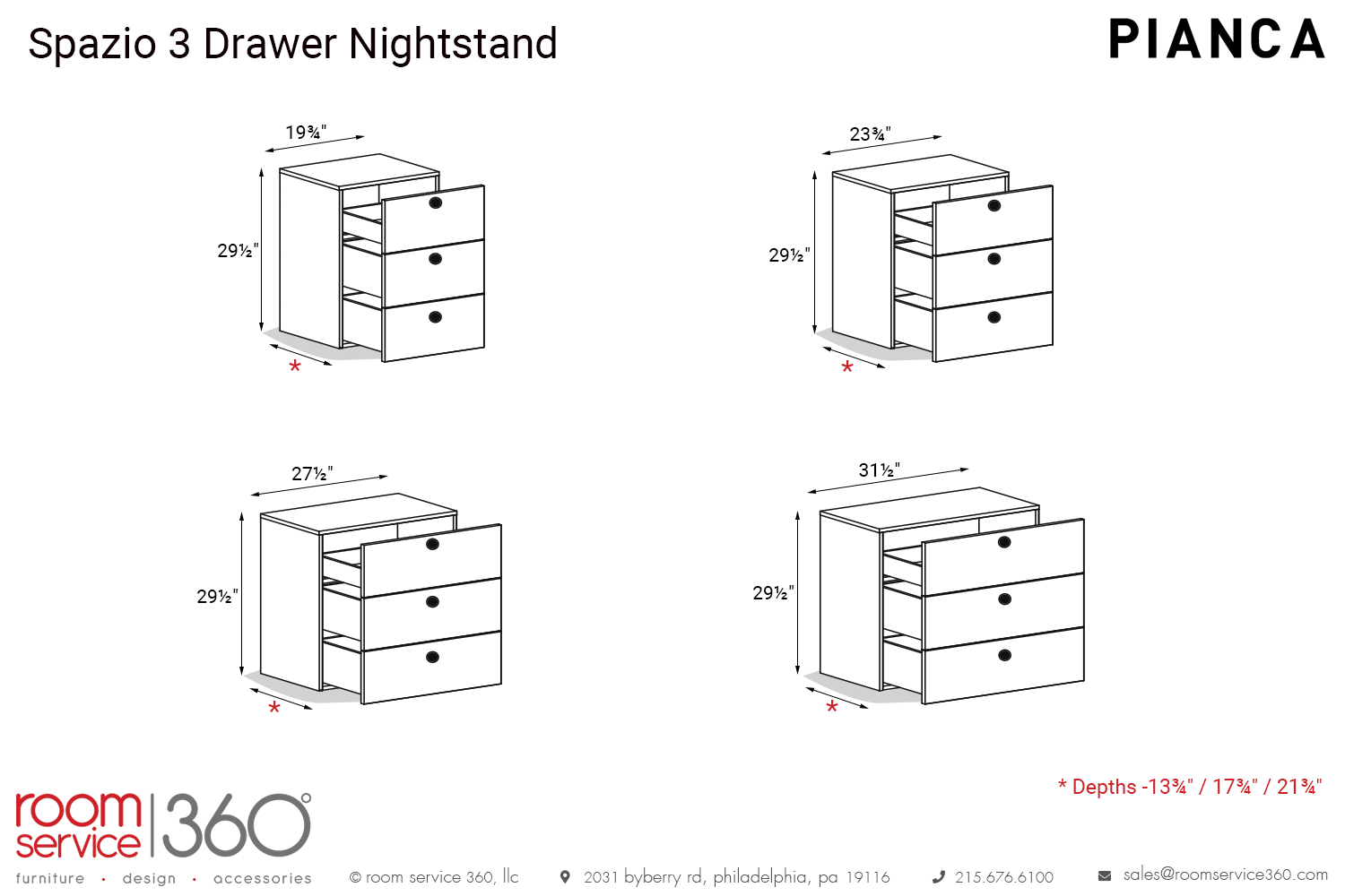 - 31½"W × 13¾" or 17¾" or 21¾" D × 29½"H
