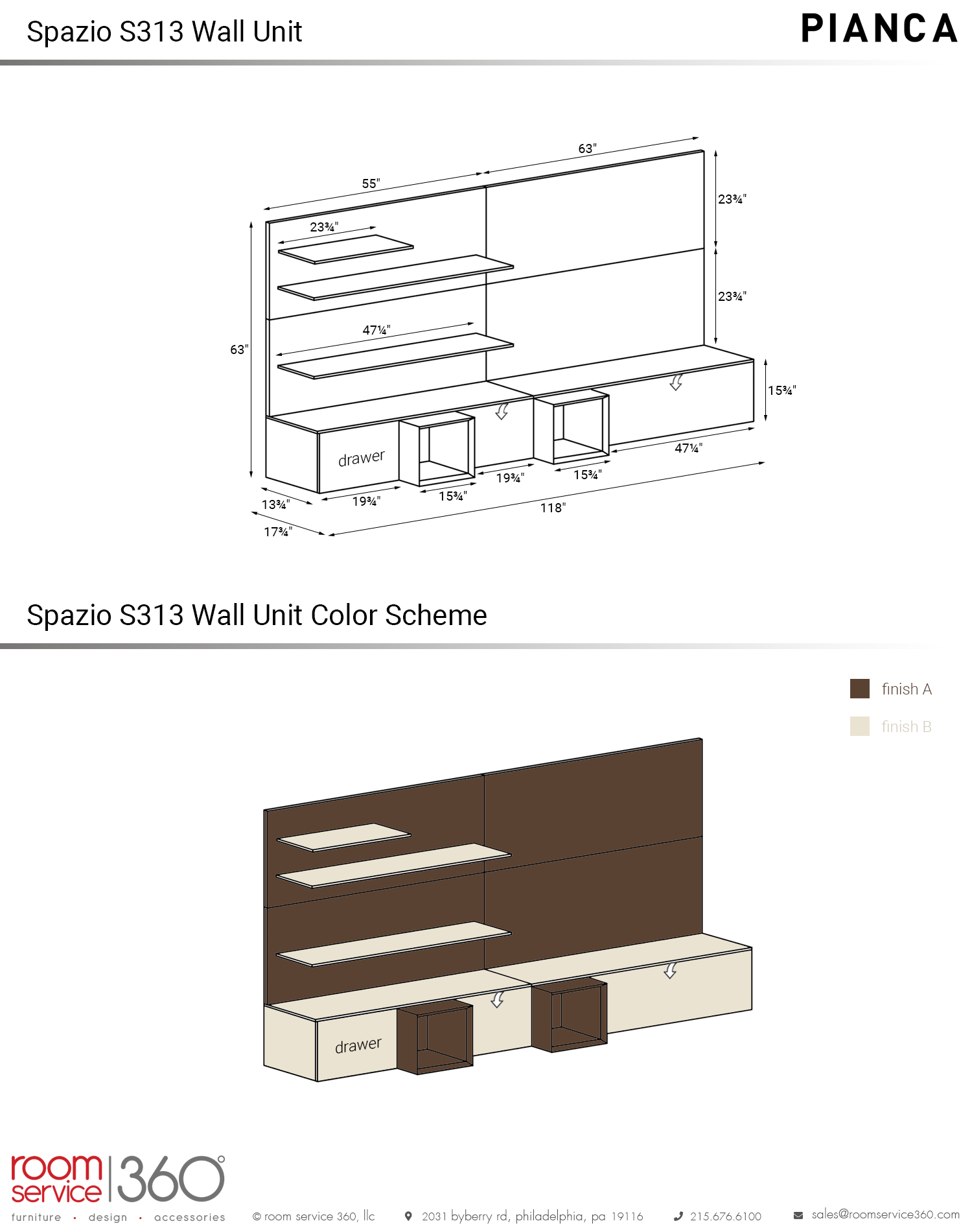 - Finish B comes in laminate, matte lacquer, wood, and glossy lacquer finishes