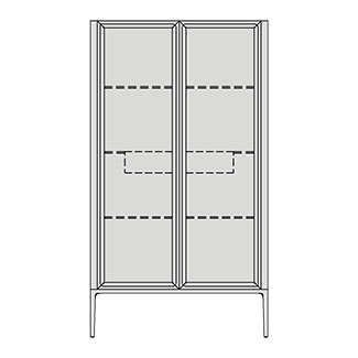 The Atsuko curio has a Canaletto walnut frame, clear glass doors, and a matte black metal base. It is designed with incredible care by David Dolcini for Porada and manufactured with excellent attention to detail by Porada in Italy.