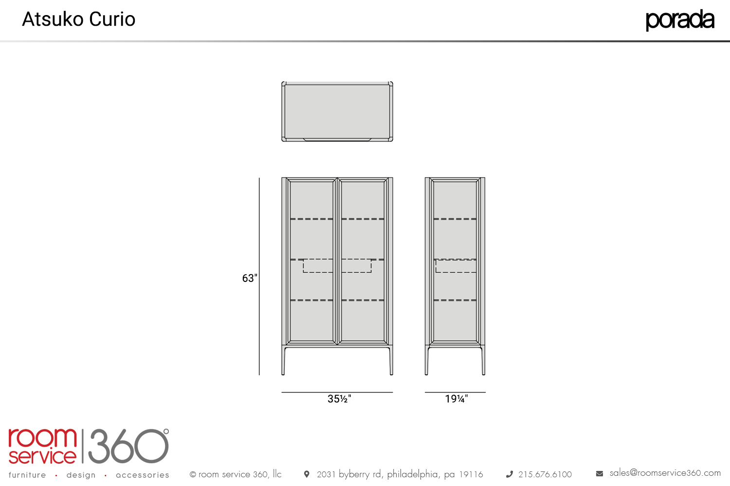 - 35½"W × 19¼"D × 63"H