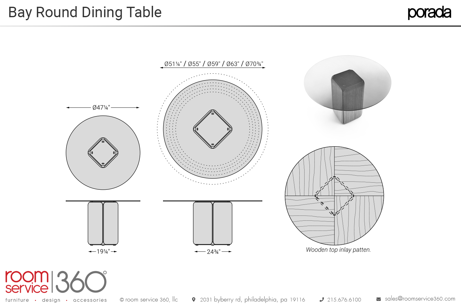 - Ø59" (wood top unavailable)